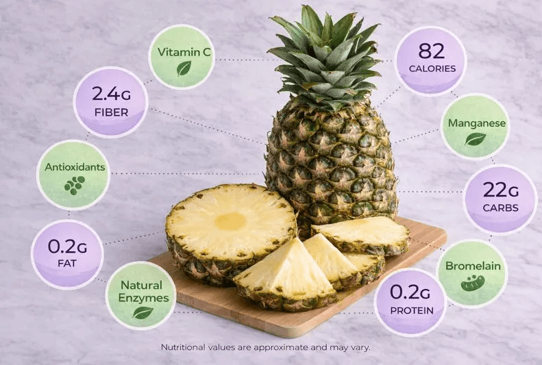 Vitamin C plays a role in reducing cortisol (the stress hormone). While pineapple won’t treat anxiety disorders, it can support stress regulation when combined with healthy habits.